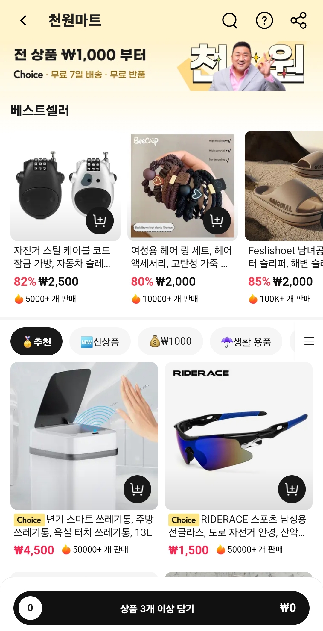 정부가 규제한다는 직구. 나는 한번도 알리테무를 사용한 적이 없지만 뉴스를 보고 어떤 쇼핑물인지 궁금해 가입하게 되었다. 그 중 단연 눈에 띄는 것은 알리 천원마트였다. 가격이 도저히 한국에서는 상상도 할 수 없을 정도로 저렴하게 책정이 되어 있었다. 사람들이 왜 그렇게 직구를 많이 했는지 알 수 있을 정도.